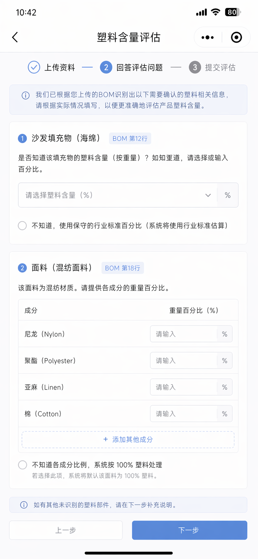 难为确定的数据(比如,小零件塑料含量)将采用最保守或行业普遍认可的标准进行处理